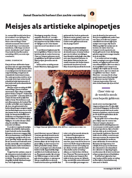 “Bij Claus fungeren de meisjes als artistieke alpinopetjes, louter bedoeld om het mannelijke lichaam te sieren en te zeggen: kijk, dit is een kunstenaar, want hij heeft een alpinopet op zijn hoofd en een mooi, ‘gewillig’ meisje aan zijn arm. En het moeten wel irrationele meisjes zijn, natuurlijk, onvoorspelbare femmes fatales, halve borderliners eigenlijk, anders is het niet spannend.”