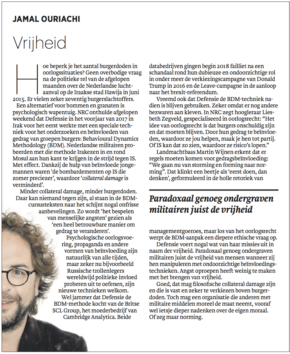 Zomercolumns in Trouw Jamal Ouariachi Geplaatst op 29 juni 2020 door Jamal Ouariachi13 januari 2021 De komende vijf weken ben ik weer te vinden op pagina 2 van Trouw, ter vervanging van Stevo Akkerman. Elke maandag, woensdag en vrijdag.